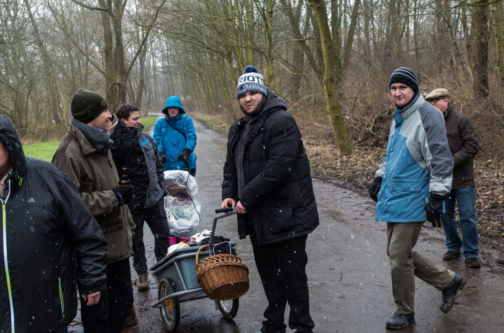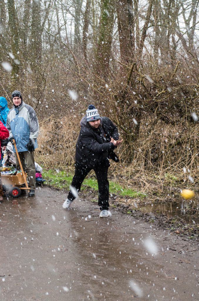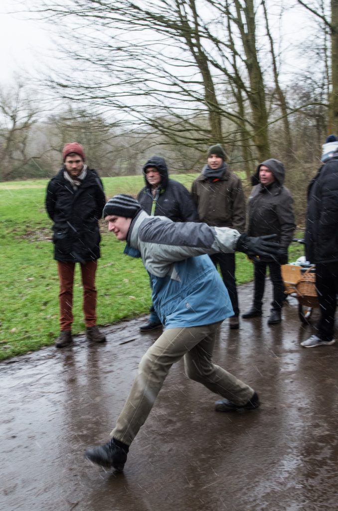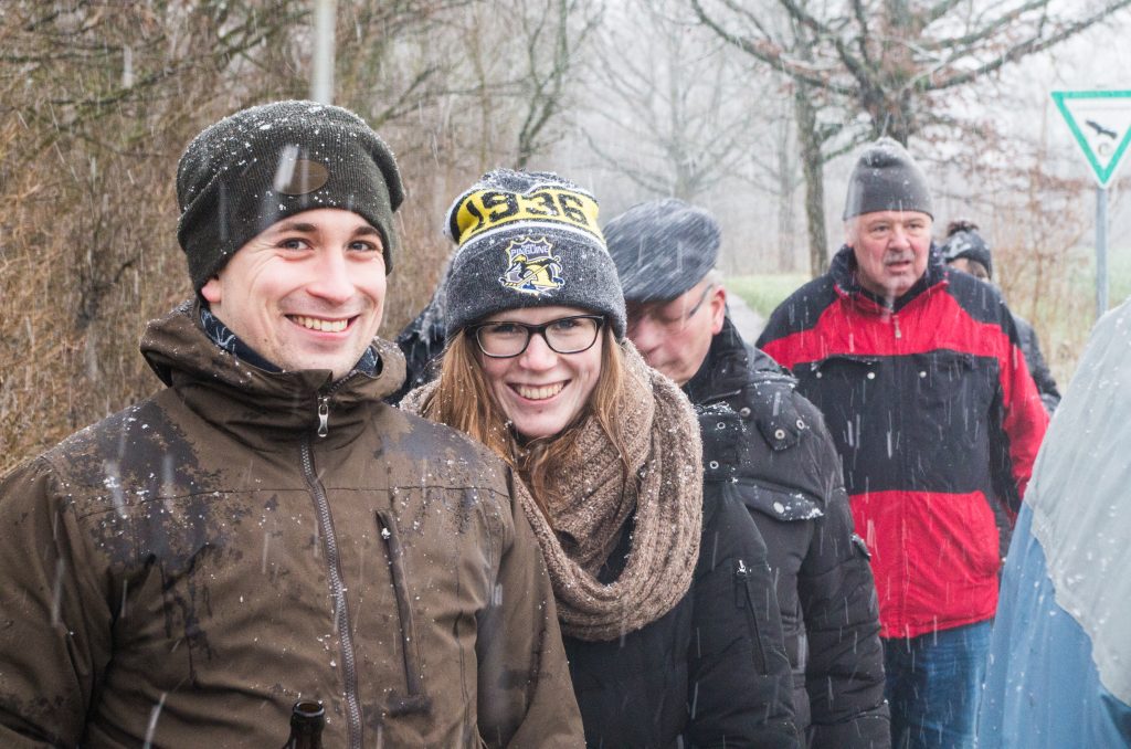 Am 03.02.2018 fand nun schon unsere dritte Bosseltour durch die Ricklinger Masch statt. Wie auch in den vergangen Jahren trafen sich die Freunde des gepflegten Kugelwerfens hinterm Ricklinger Deichtor. Leider war das Wetter in diesem Jahr nicht so gut wie im letzten, dennoch ließen wir uns weder durch Schnee noch Wind von unserem Weg abbringen. Ausgestattet mit ausreichend Verpflegung, Heiß- und Kaltgetränken, zogen wir nach der Mannschaftsbildung schließlich los. Mit insgesamt 28 Teilnehmern waren wir deutlich mehr als bei unserer letzten Tour, aus diesem Grund teilten wir uns in diesem Jahr in 4 Teams auf. So ging es Wurf um Wurf durch die Masch, zum Aufwärmen kehrten wir unterwegs in der Kolonie Kornhast ein. Zu diesem Zeitpunkt mussten wir leider bereits einen kleinen Verlust hinnehmen. Eine der Bosselkugeln wurde von einem übereifrigen Werfer im 7-m-Teich versenkt, selbst nach mehreren Versuchen konnte die Kugel nicht wieder aus dem Wasser gefischt werden. Unsere zweite Etappe endete schließlich im Vereinsheim der Sportfreunde, hier erwartete uns Grünkohl und Bregenwurst als Stärkung.