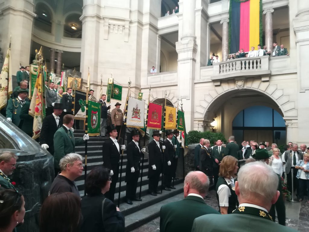 Pünktlich um 19 Uhr erklangen die Worte: „489 Jahre Schützenfest Hannover. Zum Fahneneinmarsch fertig machen.“