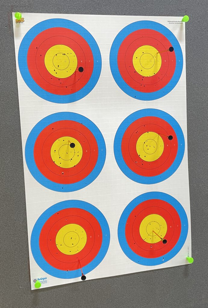 Ein Sportprogramm beinhaltet 60 Pfeile mit einer ca. 10-minütigen Pause nach 30 Pfeilen.